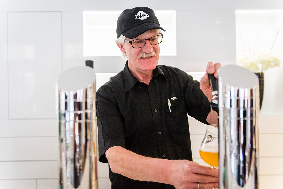 Getrunken wird, was im Ausschank an den Hahn kommt – wahre Kunstwerke aus der Brauwerkstatt genießt man bei Winnis: